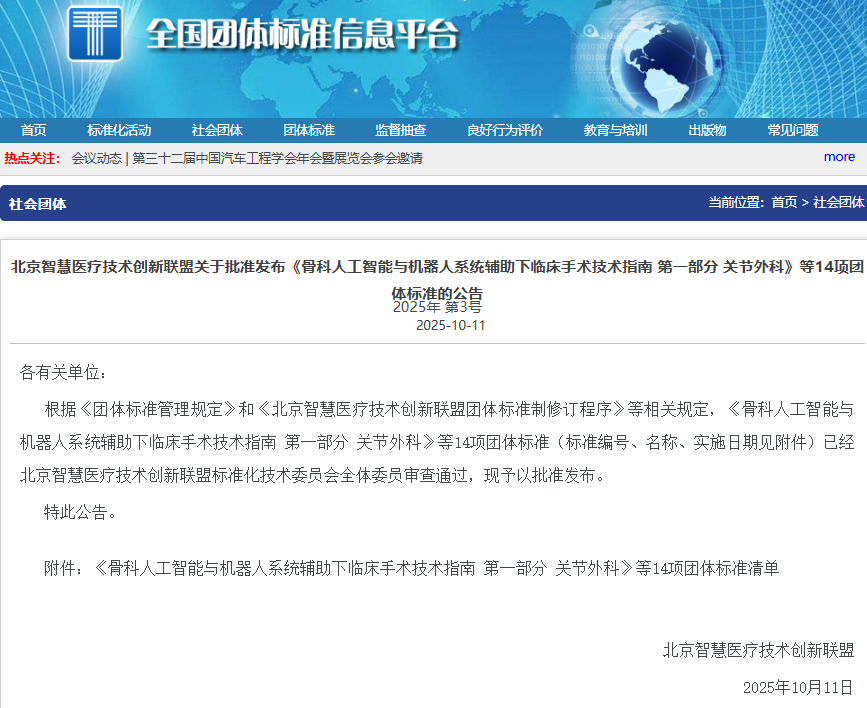 近日,北京智慧医疗技术创新联盟批准发布14项团体标准,其中由合肥德铭电子有限公司、合肥德易电子有限公司参与起草的《智慧手术室全流程数字化管理技术规范》和《智慧病房数字化建设和运维管理规范》2项团体标准发布,并将于2025年12月31日正式实施。